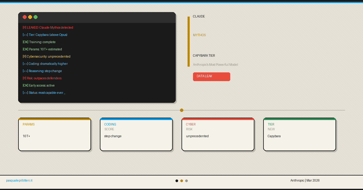 Among them: a draft blog post describing a new model called Claude Mythos, a new model tier called Capybara, performance data comparing it to Claude Opus 4.6, and a remarkably candid warning about what this model could do in the wrong hands.